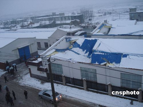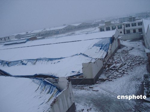 圖:安徽暴雪壓塌合肥5000平方廠房
