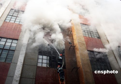 1月22日下午1點鐘左右,位于丹東市錦山大街和公安后街交界處的一個家具廠庫房發生大火,大火迅速蔓延到整個樓層,濃煙彌漫了整個廠區和相隔僅幾十米的居民區,而且當時三樓以上還有部分工人在樓內上班。險情發生后,丹東消防部門從各消防中隊迅速調派20多輛消防車趕到現場進行滅火和人員救援。下午三點多鐘,大火被控制住,樓內的工人也安全撤出。據了解,由于三樓的工人對供暖設施進行拆除,焊接時引燃了二樓庫房內的家具導致了這場大火。中新社發 陳浩浩 攝