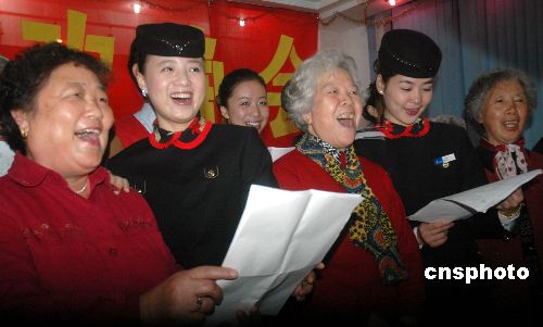 2008年1月24日,位于海口市的海南快樂夕陽敬老園舉辦“敬老愛老迎春聯(lián)歡晚會”,來自全國各地在該園休閑過冬的150多名“候鳥老人”與海南航空的20多名乘務(wù)員歡聚一堂,互送新年禮物和互動表演文藝節(jié)目,共同歡度了一個難忘的夜晚。中新社發(fā) 善平 攝