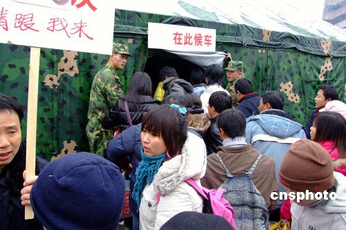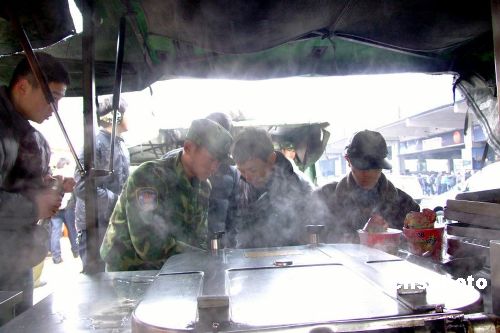 圖:南京軍區官兵在火車站搭設的“野戰帳篷”