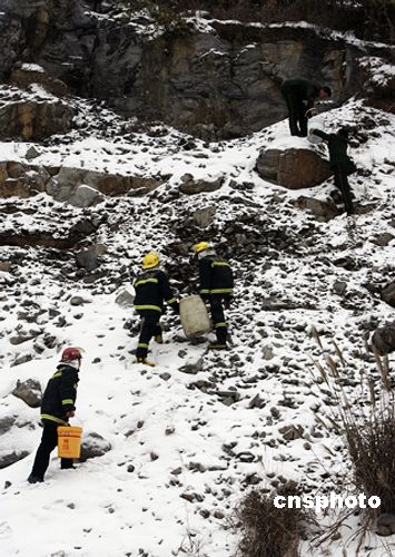 圖:民工被困重慶山中 消防員冒雪送水