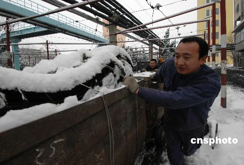 2月1日,職工在搶運各種井下生產(chǎn)所需材料。罕見的高強度降雪連續(xù)突襲江淮大地。入冬以來,作為國有重點煤礦的安徽淮北桃園煤礦積極克服雪災給安全生產(chǎn)帶來的不利影響,精心組織原煤生產(chǎn),全力保證電煤正常供應(yīng)。 中新社發(fā) 任兆勁 攝