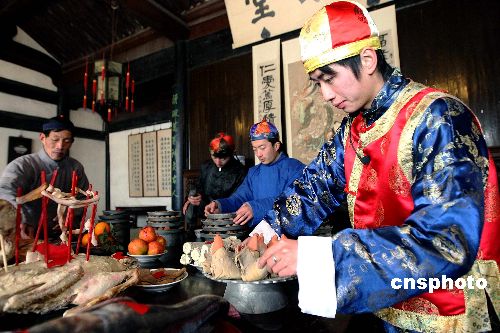 2月8日,紹興魯迅故里舉行“祝福”祭祀活動(dòng)。當(dāng)日是農(nóng)歷正月初二,浙江紹興魯迅故里在周家老臺(tái)門模仿魯迅小說(shuō)《祝福》的場(chǎng)景,從正月初一至初五每天進(jìn)行紹興傳統(tǒng)年俗“祝福”場(chǎng)景表演。紹興的年俗“祝福”因魯迅小說(shuō)而名揚(yáng)天下,浙江省將紹興魯迅故里“祝福”定為惟一的春節(jié)保護(hù)示范地。中新社發(fā) 袁云 攝