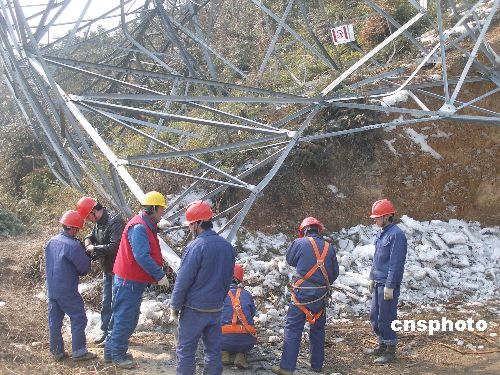 圖:湖南婁底武警官兵電力職工新年搶修倒塌電力