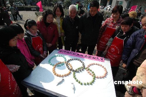 2月17日下午,“五環湯團鬧元宵”活動在杭州水澄橋社區民安苑中心花園舉行,350名社區居民紛紛前來一展身手,一起制作“五環湯團”,在喜迎元宵佳節的同時表達對北京奧運的祝福與期盼。中新社發 引煒 攝