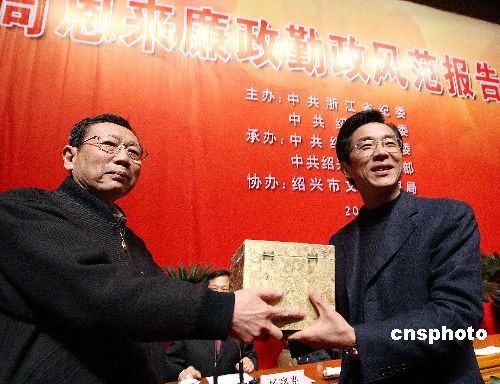 2月19日,浙江省紀(jì)委和紹興市委舉行了“周恩來廉政勤政風(fēng)范報(bào)告會”和“周恩來風(fēng)范在線網(wǎng)站”開通儀式系列紀(jì)念活動(dòng)。周恩來的親屬、生前身邊工作人員在報(bào)告會上講述了周恩來廉政勤政的往事。今年3月5日是中國開國總理周恩來誕辰110周年,浙江紹興是周恩來的祖籍。中新社發(fā) 袁云 攝