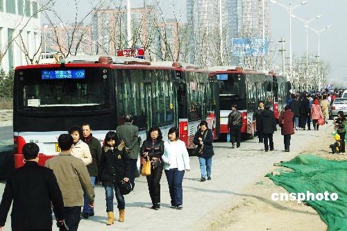2月20日,為方便跳水世界杯比賽期間北京市民到中國國家游泳中心“水立方”觀賽,北京公交集團第三客運分公司、新奧客運分公司分別開辟兩條直達比賽場館的“好運北京專線”。該專線線路的首站為新街口豁口,末站國家游泳中心,全程10.75公里。中新社發 鄭雄增 攝
