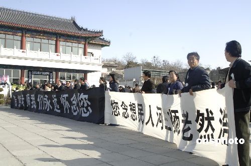數百位專程從河北三河市趕來的市民打出悼念長幅。