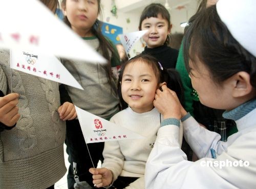 2月29日,河北滄州市人民醫(yī)院的醫(yī)護人員為幼兒園的兒童進行聽力測試。為迎接第九次全國愛耳日,滄州市人民醫(yī)院耳鼻喉科的醫(yī)護人員結(jié)合主題“奧運精神-我聽到”,組織了以“健康聽力,綠色奧運”為口號的義診活動。在為期半天的活動中,醫(yī)護人員先后為100余名兒童進行了聽力測試,并做了預(yù)防耳病基礎(chǔ)知識的宣傳。中新社發(fā) 郭金明 攝