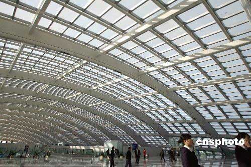 2月29日,北京首都國際機場3號航站樓正式投入運營,圖為樓前地面交通中心。中新社發 張勤 攝