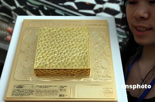 三月五日,金一文化發(fā)展有限公司首款純金水立方模型產(chǎn)品在北京國家游泳中心舉行首發(fā)式。水立方系列模型產(chǎn)品包括純金、純銀和水晶、琉璃等四種材質(zhì)。每款都是全球限量發(fā)行,具有較高的紀(jì)念價值、鑒賞價值及收藏投資價值。中新社發(fā) 任海霞 攝