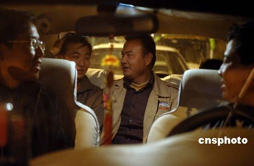 3月24日晚,拉薩火車站廣場(chǎng)外,由于出租乘客減少五位出租車司機(jī)坐在同一輛車內(nèi)消夜等候乘客。3·14事件影響了民眾夜間出行,拉薩出租車乘客銳減。中新社發(fā) 廖攀 攝