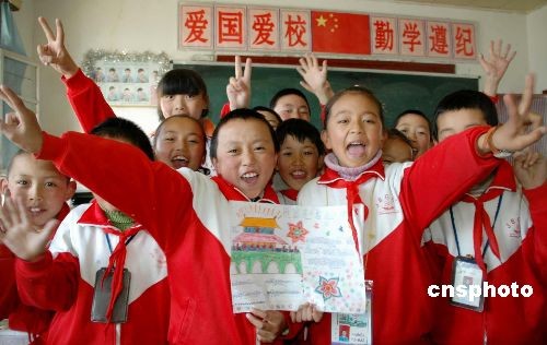 3月27日,拉薩市城關區(qū)吉崩崗小學四年級的學生表達熱愛祖國反對分裂的心情。拉薩“3.14”打、砸、搶、燒暴力事件發(fā)生后,西藏各界以各種方式紛紛表達對暴亂分子殘忍罪惡行徑的痛恨。中新社發(fā) 周波 攝