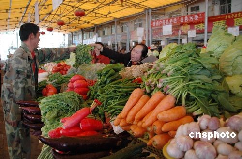 28日,拉薩市各農貿市場各種蔬菜、水果、食品充足,價格穩定,購銷兩旺。拉薩“3。14”打、砸、搶、燒事件發生后,拉薩各市場已恢復正常,又呈現出繁榮景象。中新社發 周波 攝
