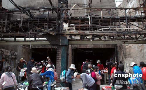 4月12日,昔日繁華似錦的拉薩市朵森格路又恢復了往日的景象。街道上車水馬龍,人來人往,各種商品琳瑯滿目,選購的人們絡繹不絕,盡管在“3.14”暴力事件中許多被焚燒成廢墟的經營大樓還處在修復之中,但整個市場交易已呈現出十分火紅的景象。中新社發 周波 攝