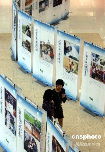 5月1日至5月11日,新中關購物中心為期11天的“2008大愛無疆·母親水窖”活動旨在動員廣泛的社會力量,關注西部,關注貧困,關注缺水地區的母親和兒童,幫助他們建更多的“母親水窖”。同時,“大地之愛·母親水窖”攝影展舉辦,多幅圖片真實記錄下了西部地區缺水、貧困的震撼場面,也向人們展示了“大地之愛·母親水窖”從成立到現在所走過的歷程,以及“母親水窖”建成后對于當地群眾生活的影響。中新社發 楊可佳 攝