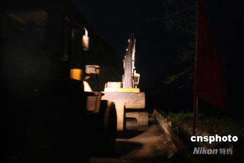圖:挖掘機連夜趕赴地震一線疏通道路
