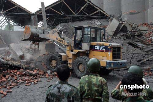 5月14日,據抗震救災前線的最新消息,救援隊伍已經進入四川重災區的所有市縣。圖為空降兵配合重型機械在什邡洛水拯救被掩埋的群眾。中新社發 譚超 攝