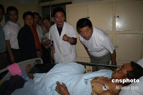 5月14日晚,由貴州省衛生廳廳長何崇遠帶領的首批貴州援川醫療隊近百人抵達四川眉山市,增援當地醫院救治地震災區的傷員。眉山市各主要醫療單位在做好本地傷員救治工作的同時,大量收治來自四川綿竹等災區的重傷員。貴州援川醫療隊抵達眉山市的當晚,立即趕到病房和當地醫務人員一起會診重癥傷員,討論治療方案。中新社發 堯遙 攝