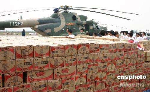 5月16日,在成都太平寺機(jī)場,各地支援的大批救災(zāi)物資正等待陸續(xù)運(yùn)往汶川地震災(zāi)區(qū)。中新社發(fā) 楊杰 攝