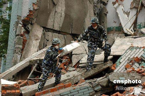 5月16日, 2750名海軍陸戰(zhàn)隊(duì)官兵分三個(gè)梯隊(duì)相繼順利到達(dá)四川地震災(zāi)區(qū),立即展開救援行動(dòng)。第一梯隊(duì)到達(dá)綿竹縣漢旺鎮(zhèn)的760名官兵在災(zāi)情最嚴(yán)重的地方進(jìn)行搶險(xiǎn)救援,并在救援中使用了生命探測儀。目前,世界上只有美國和英國有這樣的生命探測儀,地震災(zāi)區(qū)中海軍官兵使用的是中國自行研制的,僅在漢旺鎮(zhèn),他們就有5臺這樣的儀器。圖為海軍陸戰(zhàn)隊(duì)官兵在四川綿竹縣漢旺鎮(zhèn)使用生命探測儀進(jìn)行搜救。中新社發(fā) 李唐 攝