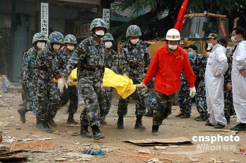 圖:海軍陸戰(zhàn)隊(duì)官兵在綿竹災(zāi)區(qū)展開(kāi)搜救