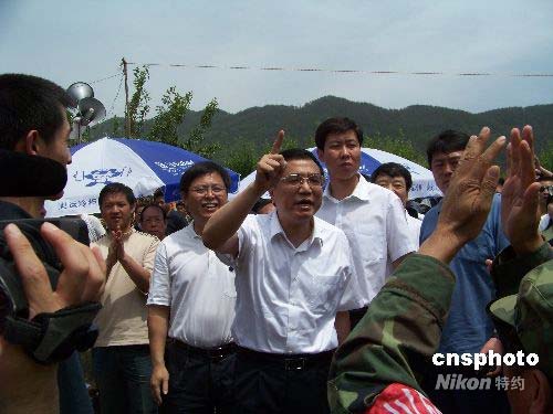 5月18日,李克強來到受災嚴重的四川綿陽市,指導協調搶險救援和防疫防災工作。中新社發 梁志杰(部隊) 攝