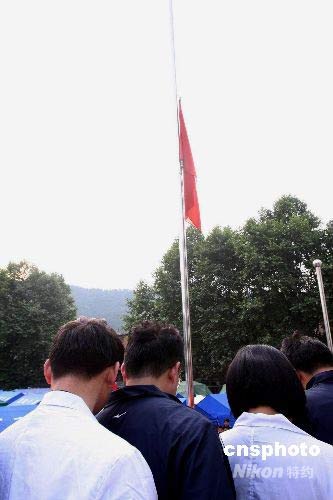 五月十九日清晨,四川省重災區青川縣人民在青川中學舉行降半旗儀式,向“五·一二”四川汶川大地震死難同胞致哀。中新社發 黃榮 攝