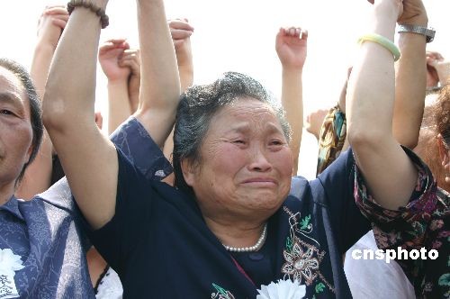 5月19日下午,成都數萬民眾在天府廣場振臂高呼“同胞,走好!”“四川,雄起!”“中國,加油!”,放聲表達對汶川地震遇難同胞的哀悼,為四川和中國抗震救災加油。中新社發 魏姝 攝