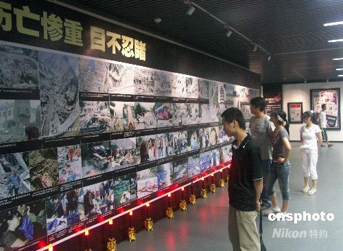 5月25日,眾志成城,抗震救災——四川汶川5.12地震大救援特別展在南京展覽。本次展覽共展出了600多張救災照片和5部音像資料片,展現了中華民族面對災難所表現出的英雄氣概。圖為觀眾在觀看汶川地震大救援圖片。中新社發 willis84 攝