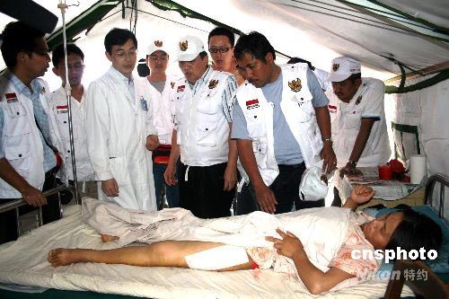 5月30日,印度尼西亞國際醫療隊正在救治隴南文縣的災區群眾,這支20名由外科、內科、兒科等醫生組成的醫療隊將為災區群眾提供醫療救助。中新社發 劉二銀 攝