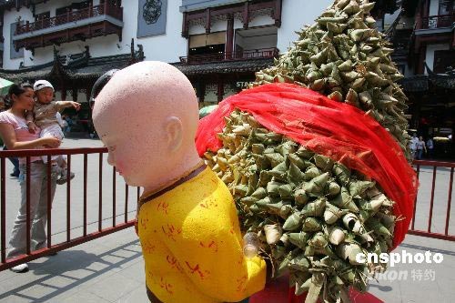 6月5日,一個由2008個小“粽子”組成的大“粽子”亮相上海街頭,吸引了不少路人的目光。隨著端午節的臨近,端午氣息在申城街頭日益濃郁。中新社發 湯彥俊 攝
