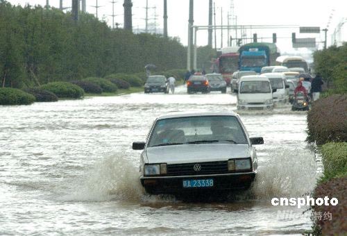 6月10日,車輛在水中艱難行進。連日暴雨,導致南昌城區多處發生內澇,給市民出行帶來許多不便。6月8日至10日江西省出現持續強降雨,主要集中在浙贛線以北的景德鎮、上饒、宜春、南昌、萍鄉等地。據江西省水文部門監測,截至10日8時,江西降雨超50毫米的有60個縣235個水文站,超100毫米的有35個縣125個水文站。浮梁、婺源、萬載、袁州4個縣區10個站降雨超過200毫米。中新社發 朱文標 攝