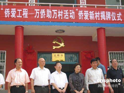6月12日,國務院僑辦主任李海峰在陜西省北雙廟村參加全國第一個“僑愛新村”揭牌儀式,同時參加揭牌儀式的還有西安市市長陳寶根、國務院僑辦國內司司長程鐵生、唐仲英基金會代表孫幼帆先生。中新社發 張珂 攝