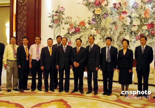 6月26日,國民黨副主席關中出席第三屆兩岸產業共同市場研討會,第三屆兩岸產業共同市場研討會暨第四屆桂臺經貿合作交流會為期三天。圖為廣西壯族自治區區委書記郭聲琨(右五)會見關中(右六)。中新社發 夏曉弘 攝