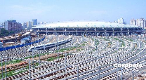 7月6日,北京新南站在藍(lán)天的映襯下顯得更加美麗壯觀。當(dāng)日上午,京津兩地記者以及邀請(qǐng)到的市民代表200多人登上列車(chē),從北京南站出發(fā),平穩(wěn)運(yùn)行32分鐘后,于9點(diǎn)28分到達(dá)天津站,順利完成列車(chē)的首次載客試運(yùn)營(yíng)。中新社發(fā) 玉龍 攝