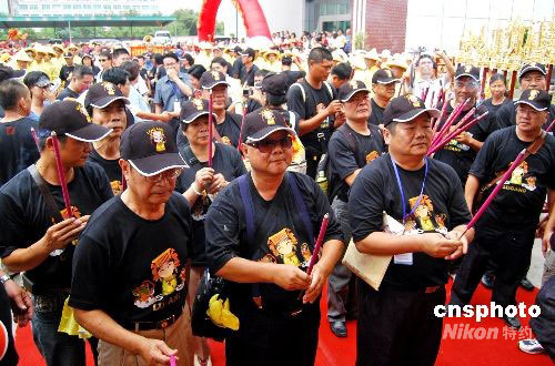 九月五日中午,臺灣鹿港天后宮進香團的三百多名媽祖信眾由金門分兩批乘船抵達泉州石井對臺客運碼頭,進行為期五天的謁祖進香活動。 這是鹿港天后宮開基媽祖一百九十一年后重回大陸謁祖。據(jù)介紹,鹿港天后宮媽祖,是三百多年前施瑯將軍從福建引請到臺灣的。曾于清嘉慶二十二年(一八一七年)在鹿港八郊人士護送回湄洲祖廟謁祖,迄今已一百九十一年,這次再回祖廟會香,見證兩岸媽祖神緣。中新社發(fā) 傅丹丹 攝