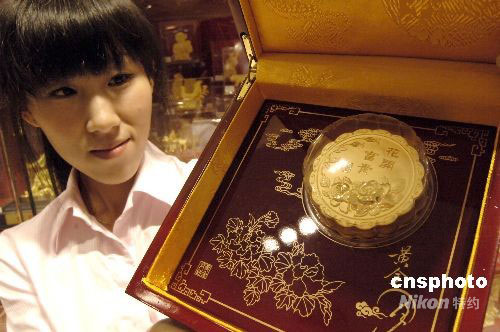 中秋佳節將至,純金月餅及節日飾品搶先登場,融節慶氣氛與黃金投資合二而一的商家創意,推動北京中秋市場熱潮涌動。中新社發 徐曦弋 攝