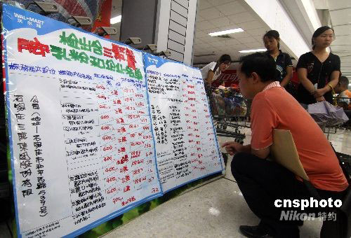 9月18日,來自湖南婁底市工商局的消息稱,在國家質檢總局通報了全國嬰幼兒奶粉三聚氰胺含量抽檢結果后,湖南婁底市市場目前已全部停售了三鹿、伊利、蒙牛、雅士利等22個廠家的69批次產品,各大賣場也同時設專柜接受已經購買“問題奶粉”的消費者的退貨。中新社發 郭國權 攝