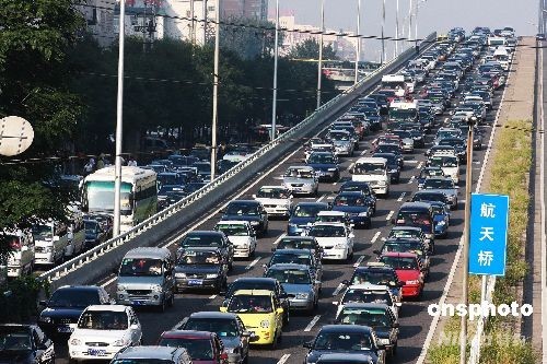 9月22日早8時15分,北京航天橋上下車流擁堵。當(dāng)日,是北京單雙號限行措施解禁首個工作日,北京市各條道路恢復(fù)至平時早高峰交通流量。此外,因諸多原因,北京市將面臨更大交通壓力,交管部門推出九大措施應(yīng)對奧運后交通。中新社發(fā) 鄭雄增 攝