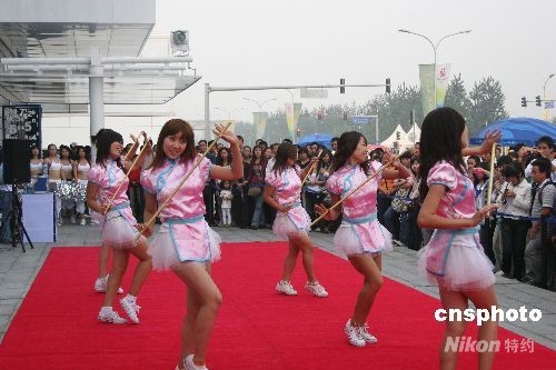10月2日,奧運寶貝表演啦啦操。“十一”黃金周期間,北京奧林匹克公園內,曾在“鳥巢”、水立方為2008奧運會比賽表演的三支奧運寶貝,為中外游客進行啦啦操表演,為節日的奧林匹克公園營造奧運氣氛。中新社發 陳曉根 攝