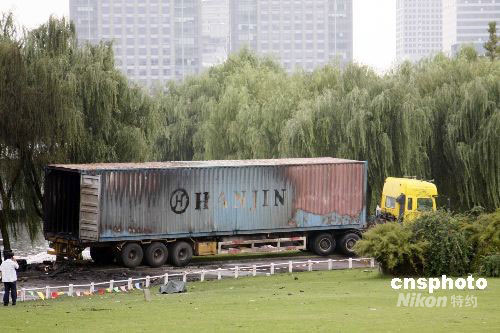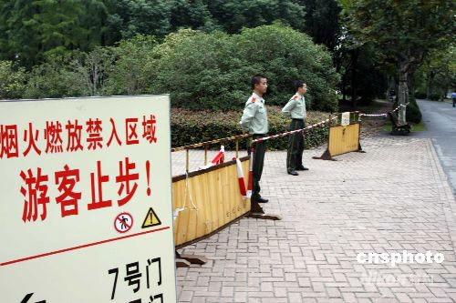 10月5日中午12時(shí)30分左右,上海市浦東新區(qū)世紀(jì)公園7號門附近發(fā)生一起煙花爆炸事故,1名煙花技師在搬運(yùn)煙花裝車的過程中,煙花突然在車廂內(nèi)發(fā)生爆炸,致其當(dāng)場死亡,所幸無游客傷亡。據(jù)警方初步調(diào)查,該煙花技師姓卜,湖南瀏陽人。9月30日、10月3日、10月6日,上海世紀(jì)公園舉辦三個(gè)音樂煙花節(jié)表演,大量煙花堆積在燃放區(qū)域。中新社發(fā) 宣克炅 攝