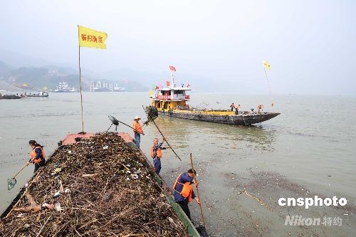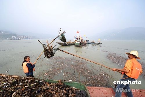 圖:三峽庫區(qū)開展大規(guī)模清漂