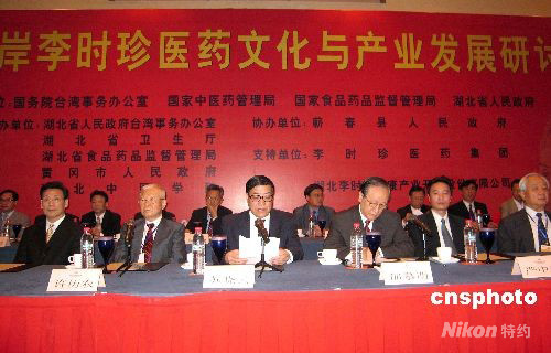 十月九日,海峽兩岸李時珍醫藥文化與產業發展論壇在武漢開幕。中共湖北省委常委、統戰部長蘇曉云,臺灣新黨主席郁慕明,臺灣新同盟會會長許歷農等出席并致辭。兩岸三地及海外李時珍醫藥文化研究機構、團體、高校、醫藥生產制造企業相關負責人四百余人與會。中新社發 艾啟平 攝