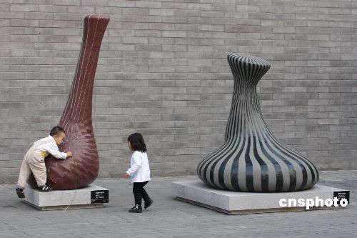 10月14日,不少游客在今日美術館欣賞數碼石雕。近日,以“科技與藝術的完美交融”為主題的數碼石雕全國巡展在北京今日美術館拉開帷幕。這些作品首先由美國藝術家使用三維數字設計解決方案,在電腦虛擬的環境中進行設計、分析、模擬和建模。而后,中國的雕刻師們參照三維快速成形打印設備制作的物理模型,以手工雕刻完成。中新社發 吳芒子 攝