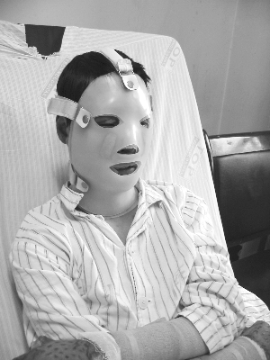 半年前,李剛在工作時(shí),面部被乙炔氣體大面積燒傷,雙手也殘疾了。性格開(kāi)朗的他變得自閉起來(lái)。目前,李剛正在東南大學(xué)附屬中大醫(yī)院康復(fù)科,戴著一種特殊的面具進(jìn)行壓疤治療,現(xiàn)在面部疤痕少了很多,也漸漸走出了心理陰影。而采用這種特殊方法對(duì)燒傷患者進(jìn)行治療,在南京是第一例。
