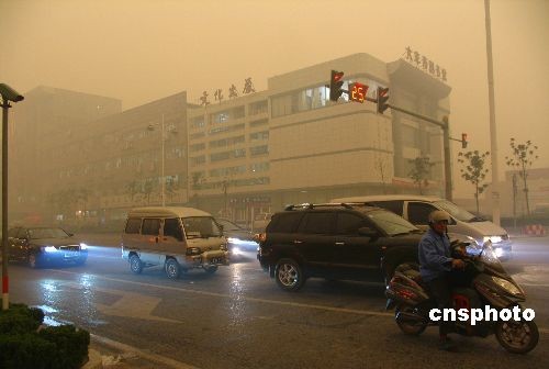 10月28日下午4時左右,江蘇省大豐市天空灰黃一片,霧霾籠罩著市區(qū),空氣中夾著輕度泥腥味,大霧給市民出行帶來不便。中新社發(fā) 周古凱 攝