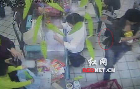 “發現口袋里手機沒了的時候,腦子一片空白,翻了N遍口袋,不太敢相信手機真丟了。”28日晚上,網友“菲林簍”在紅網論壇發帖爆料,稱27日晚上自己在長沙韶山路步步高林大店購物時,手機被盜。帖子附帶拍攝的超市監控錄像的一組圖,用圈圈勾勒出了自己被3個年輕女小偷調包偷手機,并迅速在1分鐘內逃離現場的過程。網友們紛紛對發帖人的遭遇表示同情,譴責小偷的同時提醒大家都注意防范。