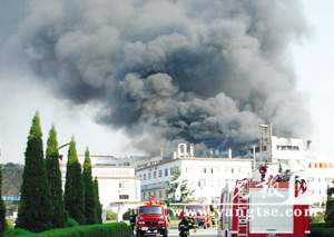 失火廠房濃煙沖天。
