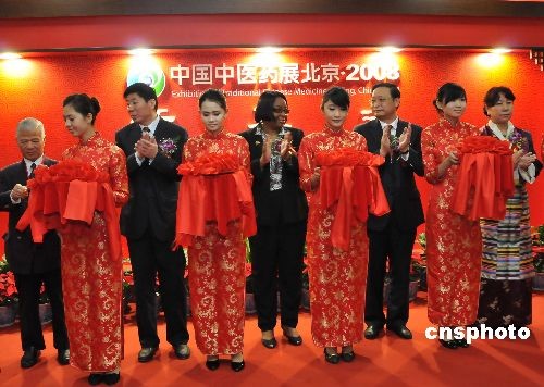 國家中醫藥管理局局長王國強(右三) 以及世界衛生組織助理總干事凱瑞薩女士(右五)今天在北京中國國際貿易中心為“中國中醫藥展”剪彩。經中國國務院批準,衛生部、國家中醫藥管理局、國家食品藥品監督管理局、教育部、科技部和解放軍總后勤部衛生部聯合主辦此次大型中醫藥展今天開幕。展覽分為中醫藥歷史文化、中藥產業、中醫藥體驗區等五大展區,會聚了內地三十一個省、區、市,香港、澳門特區,世界衛生組織,部分中醫藥產、學、研機構等一百多家單位參展。中新社發 曾利明 攝